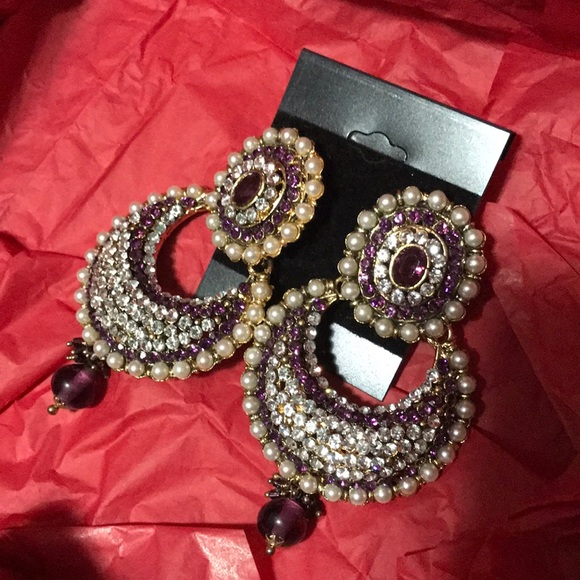Mulberry And Bronze Crystal Antique Gold Bollywood Style Chandelier Earrings