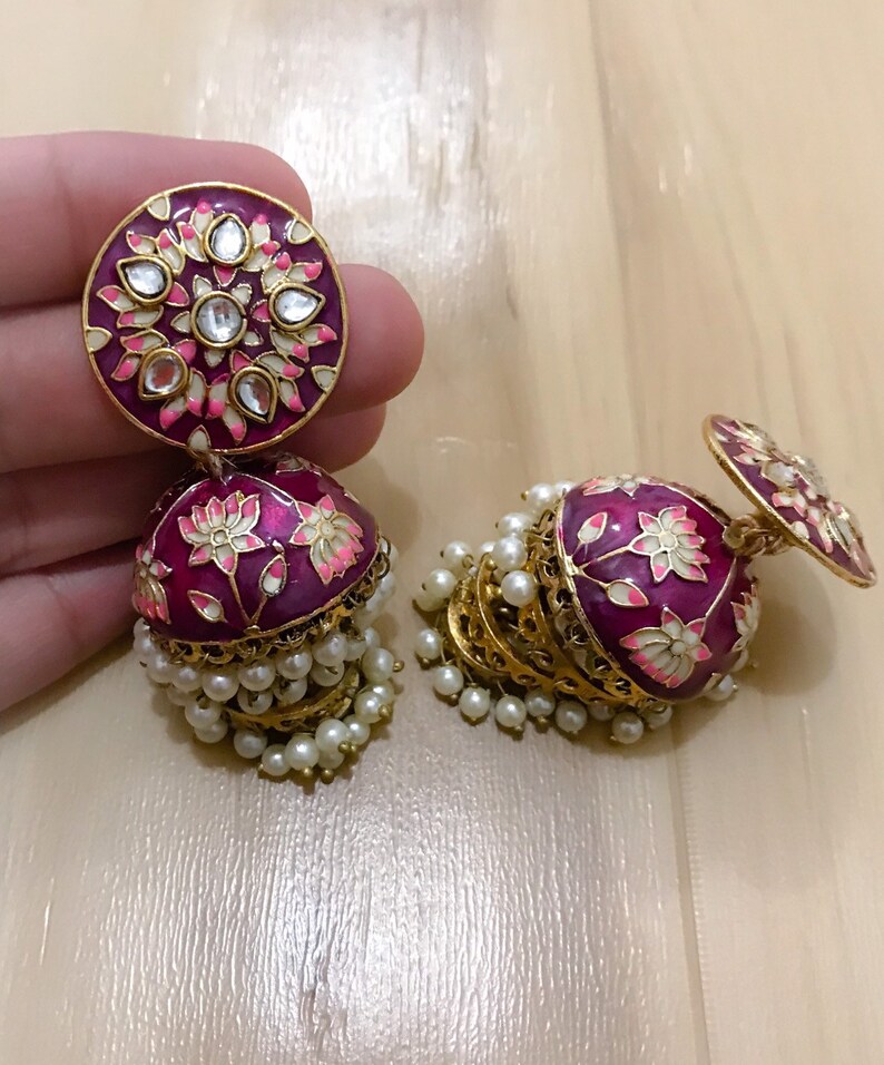 Us 12 98 The Shigner Traditional Ethnic Indian Bollywood Style Jewelry Meenakari Enamel Hand Painting Jhumka Jhumki Pearl Earrings In Drop Earrings