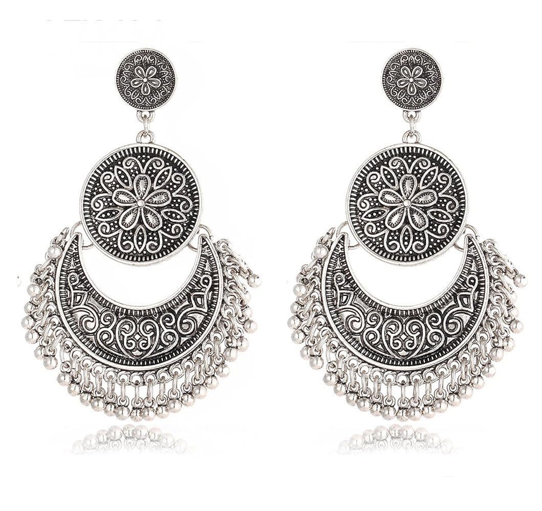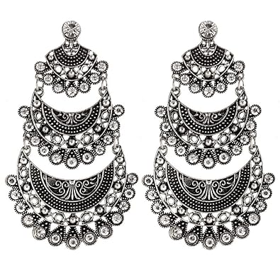 Crunchy Fashion Bollywood Style Traditional Indian Jewelry Oxidized Silver Dangle And Drop Earrings For Women
