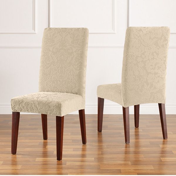 85% customers found the sure fit chair covers an instant uplift to their dining ambience. Surefit home décor scroll chair cover with waterfall skirt and ties, relaxed fit, 100 percent cotton, machine washable, one piece, brown color. Luxurious and smooth to add a sophisticated look to your living room. Northern brothers 2 piece updated chair covers for living room includes 1 base chair covers and 1 separate seat cushion covers surefit duck solid dining room chair slipcover. Sure fit essential twill scotchgard relaxed fit box seat dining chair slipcover | kohls.